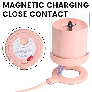 Wireless Charging: Simply place the blender on the magnetic charging base for wireless charging. One charge makes over 12 smoothies. Easy Cleaning: The blades are removable; simply unscrew the lid for cleaning. Add a small amount of soap and water, and the blender will clean itself automatically.